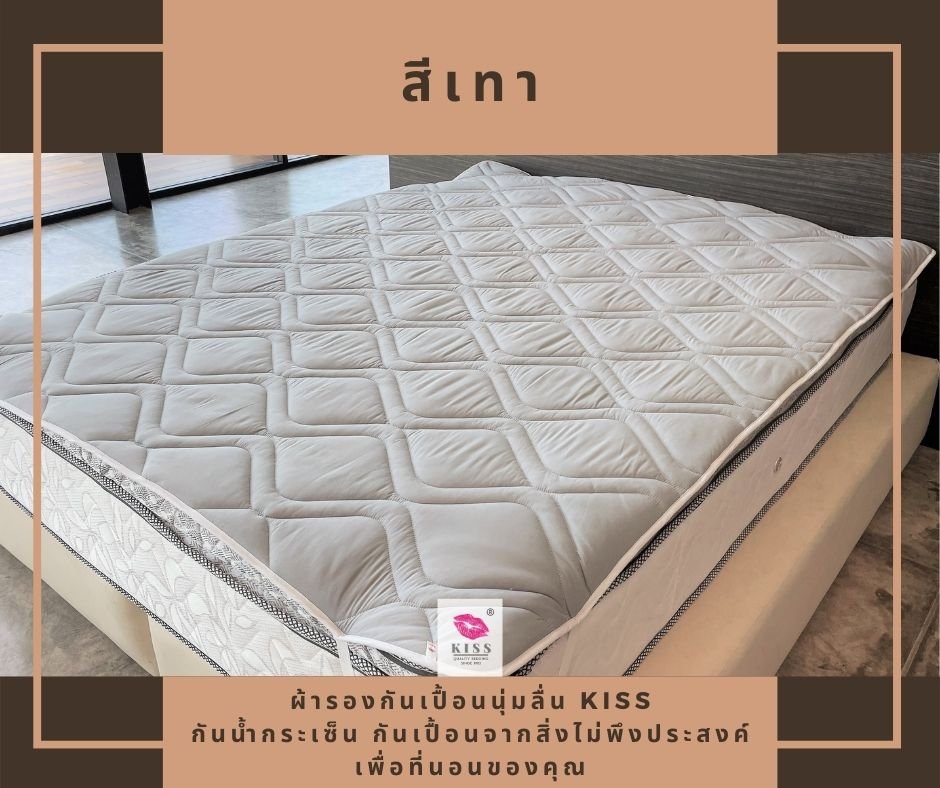 ผ้ารองกันเปื้อน KISS มียางยืดรัดมุมที่นอนทั้ง 4 มุม สีเทา