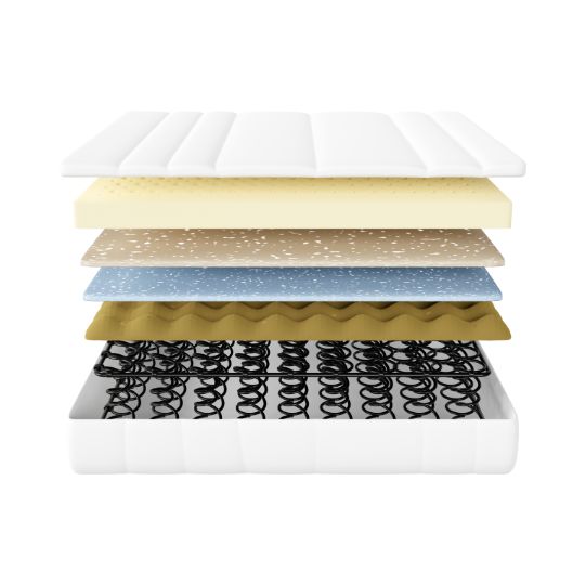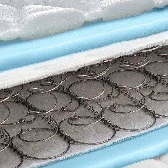โครงสปริง : แกนหลักของที่นอนสปริง โดยจะมีตัวโครงยึดเหนี่ยวลูกสปริงเข้าไว้ด้วยกัน ทำให้แข็งแรงคงทน แต่มีความอิสระน้อยกว่า พ็อคเก็ตสปริง โดยโครงสปริงมีความแน่นแตกต่างกันขึ้นอยู่กับเบอร์ของลวดสปริง จำนวนลูกสปริง เป็นต้น